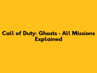 Call Of Duty: Ghosts - All Missions Explained