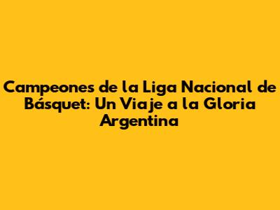 Campeones De La Liga Nacional De Básquet: Un Viaje A La Gloria Argentina