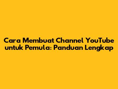 Cara Membuat Channel YouTube Untuk Pemula: Panduan Lengkap