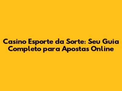 Casino Esporte Da Sorte: Guia Completo E Dicas Para Jogar