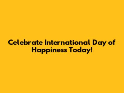 Celebrate International Day Of Happiness Today!