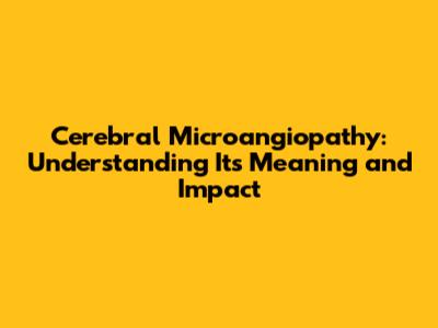 Cerebral Microangiopathy: What You Need To Know