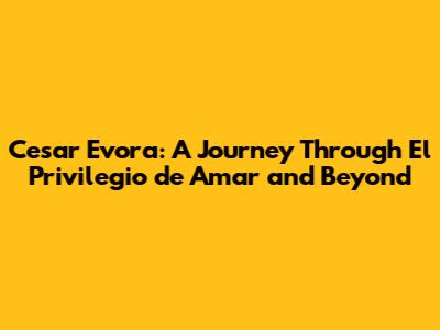 Cesar Evora: The Enduring Legacy Of 'El Privilegio De Amar'