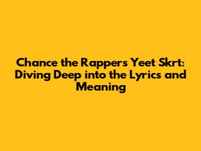 Hey music lovers! Ever found yourself vibing to a song and thinking, "What does this even mean?" Well, today, we're taking a deep dive into Chance the Rapper's track, "Yeet Skrt." This song is a head-bopping mix of catchy phrases, playful energy, and, of course, some seriously clever wordplay. So, grab your headphones, get comfy, and let's break it down together. We'll explore the lyrics, unearth the meaning, and maybe even uncover a few hidden gems along the way. Ready to unravel the mystery of "Yeet Skrt"? Let's go!