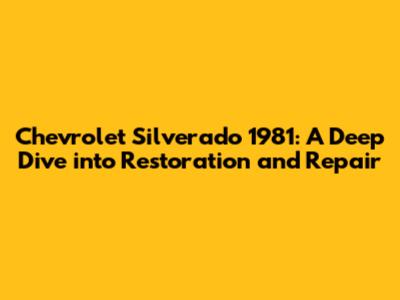 Chevrolet Silverado 1981: Restoration & Repair Guide