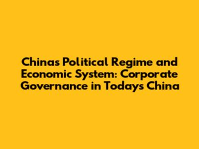 China's Political And Economic System: Corporate Governance