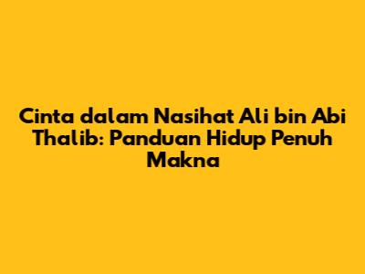 Mari kita jadikan cinta sebagai landasan utama dalam setiap aspek kehidupan kita, sebagaimana yang telah dicontohkan oleh Ali bin Abi Thalib. Dengan cinta, kita dapat mengatasi segala rintangan, mencapai kebahagiaan sejati, dan menciptakan dunia yang lebih baik untuk kita semua.