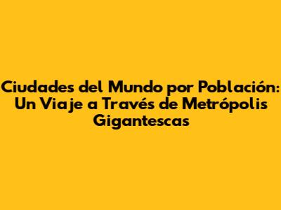 Las Metrópolis Más Pobladas: Un Panorama General