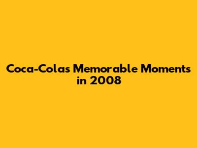 Coca-Cola's Memorable Moments In 2008