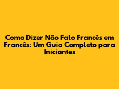 Como Dizer Não Falo Francês Em Francês