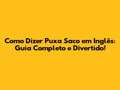 Como Dizer 'Puxa Saco' Em Inglês: Guia Completo E Divertido!
