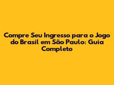 Como e Onde Comprar Ingressos para os Jogos do Brasil em São Paulo
