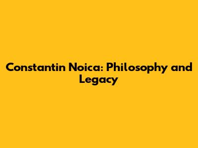 Constantin Noica: Philosophy And Legacy