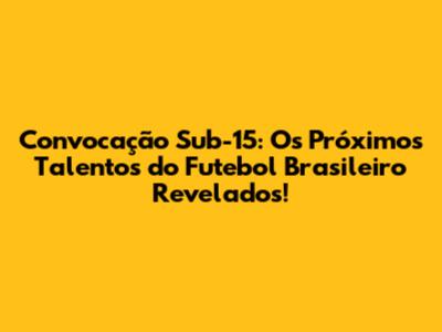 Convocação Sub-15: Descubra Os Futuros Craques Da Seleção Brasileira!