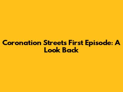 Coronation Street's First Episode: A Look Back