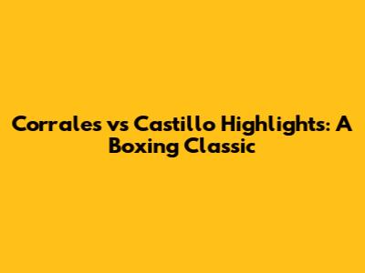 Corrales Vs Castillo Highlights: A Boxing Classic