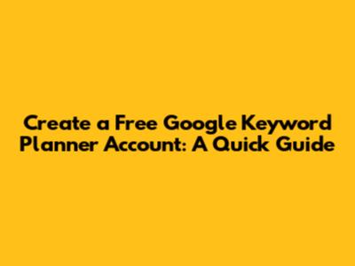 Create A Free Google Keyword Planner Account: A Quick Guide