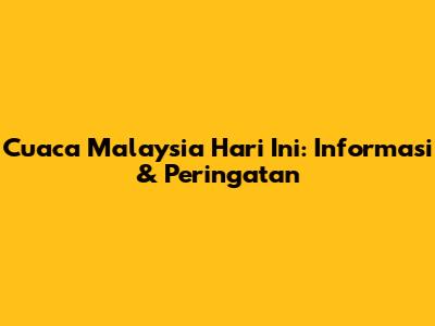 Cuaca Malaysia Hari Ini: Informasi & Peringatan