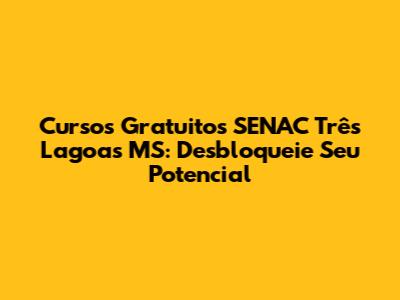 E aí, galera! Buscando dar um up na carreira ou aprender algo novo sem gastar um tostão? Se você tá em Três Lagoas, Mato Grosso do Sul, e tá de olho em cursos gratuitos SENAC Três Lagoas MS, você chegou no lugar certo! O SENAC é conhecido por oferecer uma educação de qualidade, focada no mercado de trabalho, e o melhor: de graça! Vamos mergulhar nas oportunidades que estão bombando aí na sua cidade e como você pode se aproveitar delas. Preparem-se, porque essa pode ser a chance que vocês estavam esperando para crescer profissionalmente e pessoalmente.