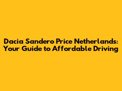 Understanding the Dacia Sandero Price in the Netherlands
