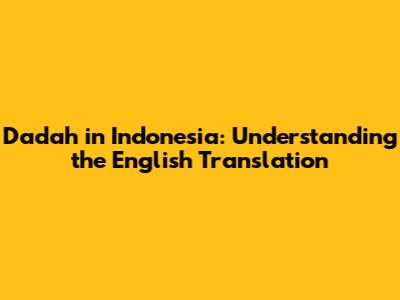 Dadah In Indonesia: Understanding The English Translation