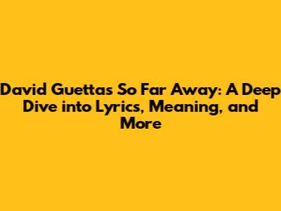 Hey music lovers! Ever gotten a song stuck in your head that just… stays there? For me, that song has often been "So Far Away" by none other than the legendary David Guetta. This track isn't just a banger; it's a journey! Let's dive deep into the world of David Guetta's 'So Far Away' lyrics, explore their meaning, and uncover all the cool stuff that makes this song so special. Whether you're a die-hard Guetta fan or just stumbled upon this tune, get ready for a fun ride through one of his most emotionally resonant tracks!