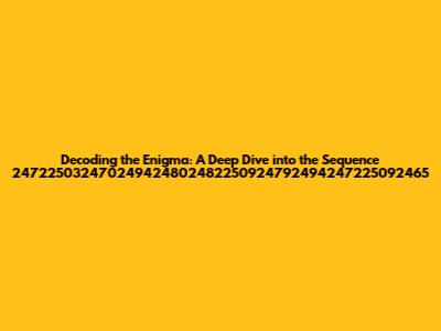 Hey guys! Ever stumbled upon something so cryptic that it just begs to be deciphered? Well, buckle up, because today we're diving headfirst into a numerical sequence that might just make your brain do a little dance. We're talking about 247225032470249424802482250924792494247225092465. Sounds intimidating? Maybe. But fear not! We're going to break it down, explore potential meanings, and see if we can uncover any hidden patterns.