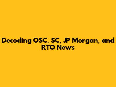 Decoding OSC, SC, JP Morgan, And RTO News