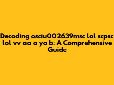 Decoding 'osciu002639msc Lol Scpsc Lol Vv Aa A Ya B': A Guide