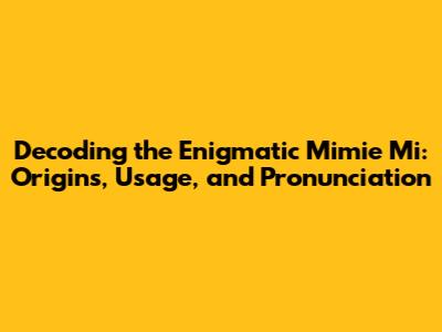 Decoding The Enigmatic 'Mimie Mi': Origins, Usage, And Pronunciation