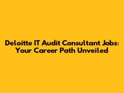 Deloitte IT Audit Consultant Jobs: A Comprehensive Guide