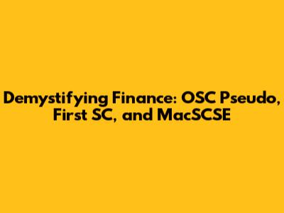 Demystifying Finance: OSC Pseudo, First SC, And MacSCSE