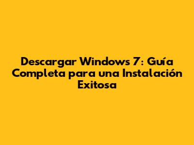 Descargar Windows 7: Guía Completa Y Optimizada