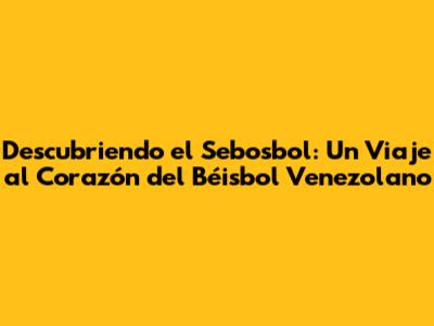 Descubriendo El Sebosbol: Un Viaje Al Corazón Del Béisbol Venezolano