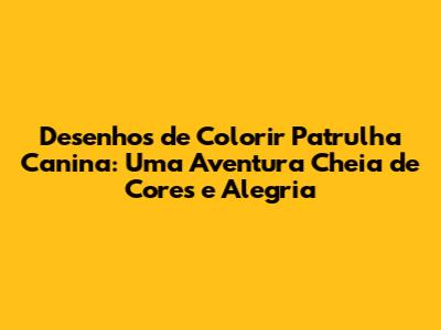 Quer deixar os desenhos de colorir Patrulha Canina ainda mais divertidos? Aqui vão algumas ideias criativas: use diferentes tipos de materiais. Além de lápis de cor, canetinhas e giz de cera, experimente usar aquarela, tinta guache e canetas hidrográficas. Crie um cenário. Desenhe um fundo para os personagens da Patrulha Canina, como a Baía da Aventura, a Torre de Observação ou a floresta. Faça colagens. Use pedaços de papel colorido, glitter, lantejoulas e outros materiais para decorar os desenhos. Crie personagens e cenários próprios. Deixe a criança inventar novos personagens e cenários para a Patrulha Canina. Faça um concurso de desenhos. Convide amigos e familiares para participar e escolher os desenhos mais criativos. Transforme os desenhos em presentes. Use os desenhos coloridos para criar cartões, convites, marcadores de livros e outros presentes personalizados. Exponha os desenhos. Crie uma galeria de arte com os desenhos da Patrulha Canina e exiba-os em um local especial da casa. A **imaginação **é o limite, e com um pouco de criatividade, os desenhos de colorir Patrulha Canina podem se transformar em verdadeiras obras de arte. Os desenhos de colorir são uma ótima maneira de estimular a criatividade, a coordenação motora e o aprendizado das crianças. Com um pouco de imaginação e dedicação, os desenhos podem se transformar em lembranças preciosas. A Patrulha Canina, com seus personagens adoráveis e suas aventuras emocionantes, conquistou o coração das crianças em todo o mundo. E os desenhos de colorir da Patrulha Canina são uma ótima maneira de celebrar essa paixão.