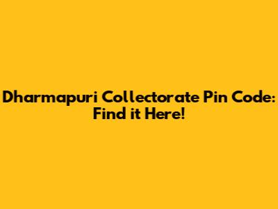 Dharmapuri Collectorate Pin Code: Find It Here!