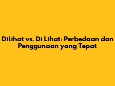 Hey guys! Pernahkah kalian merasa bingung saat menulis kata "dilihat" atau "di lihat"? Jangan khawatir, kalian tidak sendirian! Pertanyaan ini sering muncul, terutama bagi mereka yang sedang belajar bahasa Indonesia. Nah, untuk menjawab kebingungan ini, kita akan membahas tuntas perbedaan antara "dilihat" dan "di lihat" berdasarkan Kamus Besar Bahasa Indonesia (KBBI). Kita akan kupas tuntas penggunaan yang benar, contoh kalimat, dan tips agar kalian tidak salah lagi dalam menulis. Mari kita mulai!