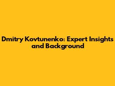Dmitry Kovtunenko: Expert Insights And Background