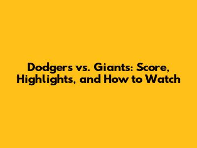 Dodgers Vs. Giants: Score, Highlights, And How To Watch