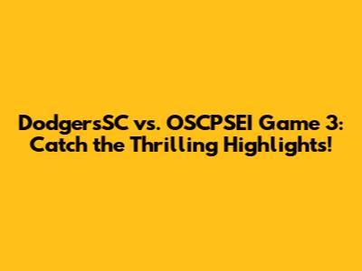DodgersSC Vs. OSCPSEI: Game 3 Highlights Today!