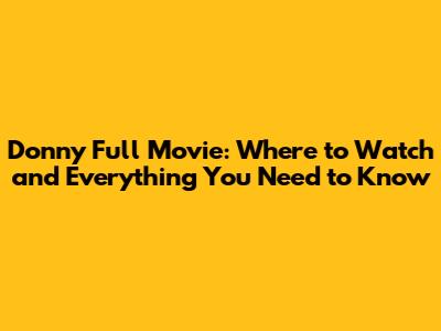Donny Full Movie: Where To Watch And Everything You Need To Know