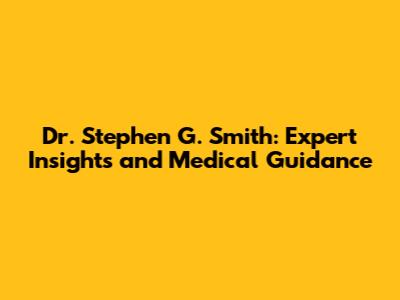 Dr. Stephen G. Smith: Expert Insights And Medical Guidance