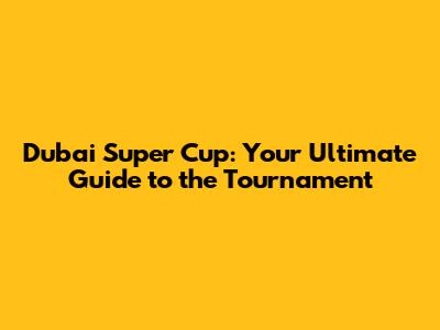Dubai Super Cup: Your Ultimate Guide To The Tournament