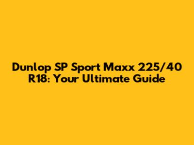 Dunlop SP Sport Maxx 225/40 R18: Ultimate Guide