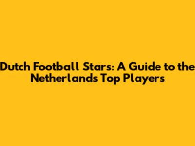 Dutch Football Stars: A Guide To The Netherlands' Top Players
