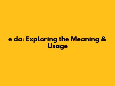 E Da: Exploring The Meaning & Usage