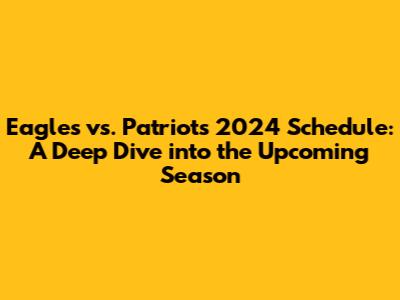 Hey sports fans! Get ready, because the anticipation is building! The clash between the Philadelphia Eagles and the New England Patriots is always a highlight, and the 2024 season promises to be no different. This article is your ultimate guide, covering everything you need to know about the Eagles vs. Patriots 2024 schedule. We'll dive into game dates, potential matchups, and what you can expect from these two iconic teams. Let's get started, shall we?