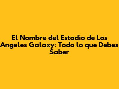 El Nombre Del Estadio De Los Angeles Galaxy: Todo Lo Que Debes Saber