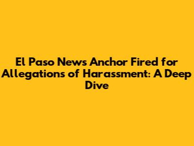 Hey guys, let's talk about something serious that's been making headlines: the El Paso news anchor who got the axe due to allegations of harassment. This story is a real eye-opener about workplace conduct, power dynamics, and the impact of such accusations. The news broke, and it immediately sparked a flurry of reactions, discussions, and, let's be honest, a whole lot of questions. As we know, news anchors are often seen as figures of trust and authority within a community. When one of them is accused of such behavior, it shakes the very foundation of that trust. Let's delve into the details, explore the potential repercussions, and examine what this all means for the media landscape in El Paso and beyond. We're going to explore what happened, the context behind the accusations, and the broader implications for the news industry and the community it serves. The situation underscores the importance of clear guidelines and strict enforcement of policies against harassment in any professional environment. This whole situation is a stark reminder that no one is above accountability, regardless of their position or public image. The news cycle moves fast, but the impact of these events can last a long time, both for those involved and for the community that consumes their work. It's a reminder that we all have a role to play in creating a safe and respectful workplace. This story also highlights the growing awareness and willingness of individuals to come forward and report instances of harassment. The courage of those who speak out is crucial in holding people accountable and promoting change. Understanding the specifics of this case can give us some vital insights into the media industry's challenges and its ongoing efforts to address issues of workplace misconduct.