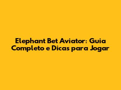 Elephant Bet Aviator: Guia Completo E Dicas Para Jogar
